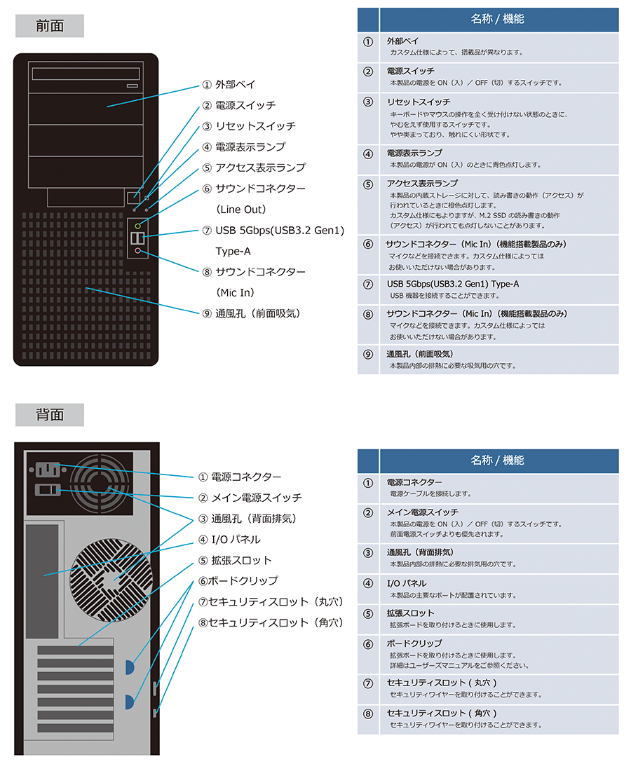 - 前面にUSB 5Gbps(USB3.2 Gen1)を標準搭載