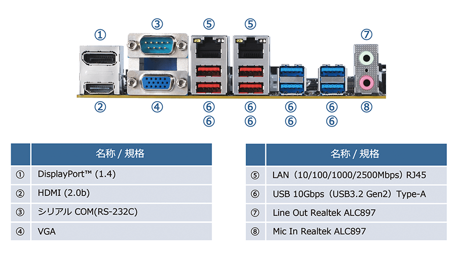 また、標準でPCIを1スロット、シリアル(COM)を1ポート搭載しているため、レガシー機器をご使用することも可能です。